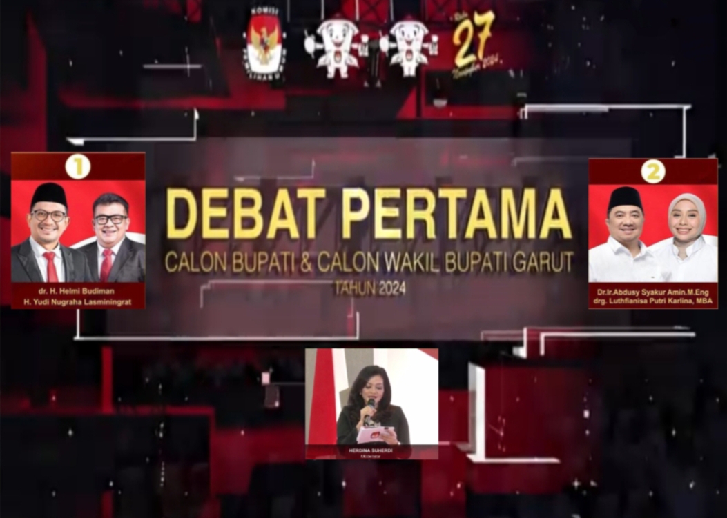Garut, CR – Pertarungan adu Argument para pasangan calon Bupati dan Wakil Bupati Garut Tahun 2024 antara Paslon dr. Helmi Budiman-H.Yudi Lasminingrat (nomor urut 1) dengan Paslon Dr. Ir. Abdusy Syakur Amin-drg. L. Putri Karlina (nomor urut 2) berlangsung sengit dalam acara debat publik Pertama yang diselenggarakan KPU Garut di Santika Hotel Garut Jalan Cipanas baru, Pananjung, Tarogong Kaler, Garut – Jawa Barat. Rabu malam 23 Oktober 2024.