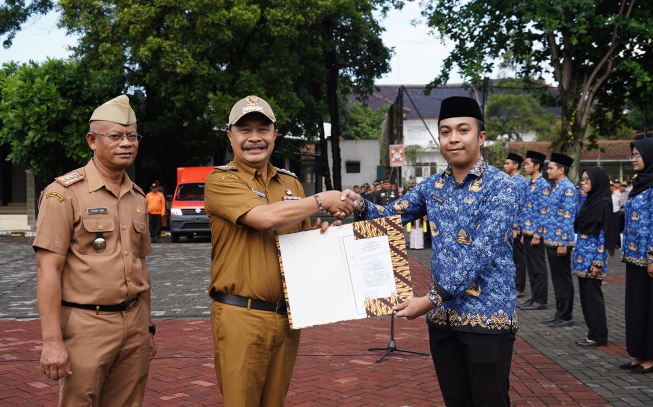 GARUT, CR – Penjabat (Pj) Bupati Garut, Barnas Adjidin, resmi melantik 10 Pegawai Negeri Sipil (PNS) lulusan Politeknik Keuangan Negara (PKN) Sekolah Tinggi Akuntansi Negara (STAN) dalam upacara yang digelar di Lapangan Sekretariat Daerah (Setda) Kabupaten Garut, Jalan Pembangunan, Kecamatan Tarogong Kidul, Senin (4/10/2024).