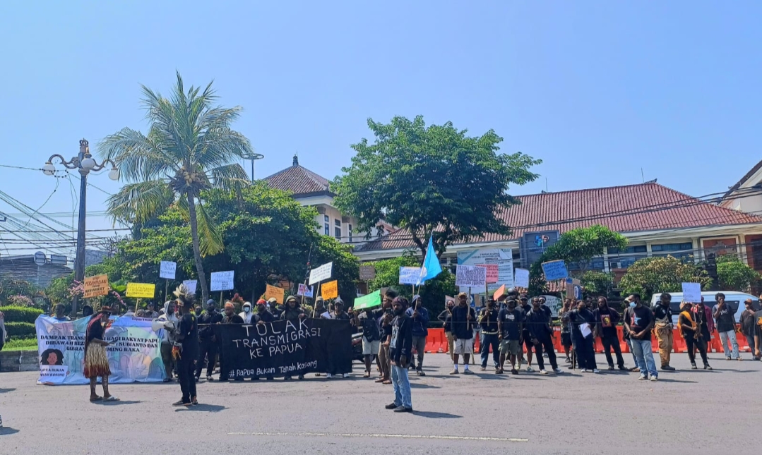 Aksi tersebut menuntut penghentian program transmigrasi yang akan dipindahkan ke Papua. Mereka menyuarakan penolakan keras terhadap kebijakan transmigrasi yang dinilai akan semakin memperburuk kondisi sosial dan ekonomi masyarakat Papua.
