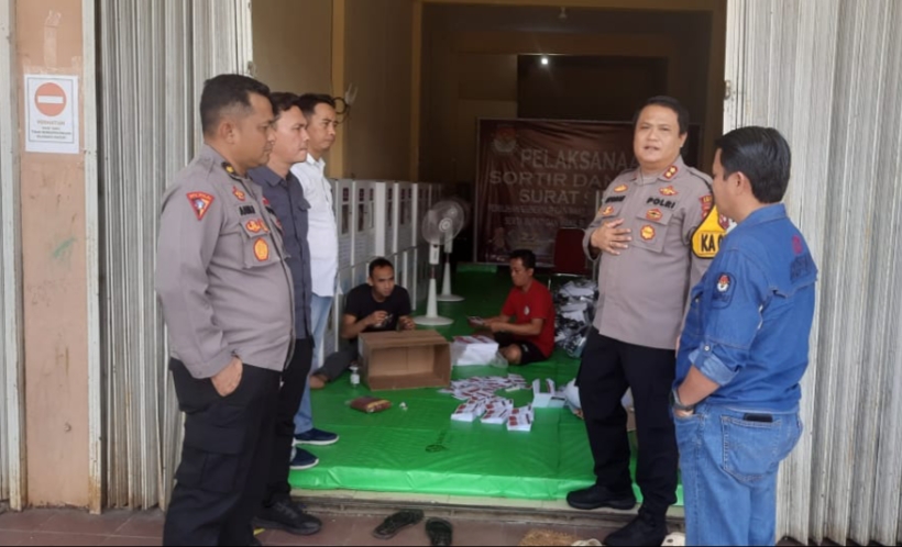 SINTANG (KALBAR), CR – Memastikan keamanan logistik jelang tahapan pemungutan suara, Kapolres Sintang Kalimantan Barat melaksanakan pengecekan terhadap Gudang logistik KPU setempat, Selasa (12/11) Siang.