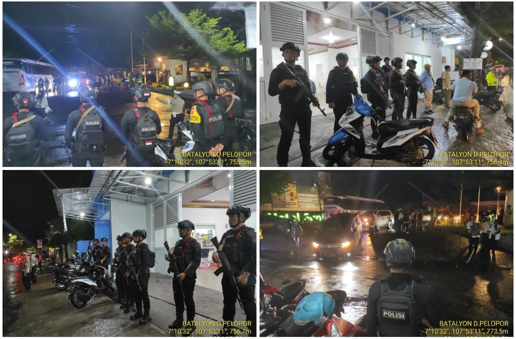 GARUT, CR – Ratusan personil gabungan bersenjata lengkap diterjunkan Polres Garut dalam pengamanan debat publik Pemilihan Kepala Daerah (Pilkada) Garut Tahun 2024 chapter 2, di sekitar kawasan Santika Hotel Garut, jalan Cipanas baru, Pananjung, Tarogong Kaler, Kabupaten Garut, Jawa Barat, Rabu sore (20/11/2024).