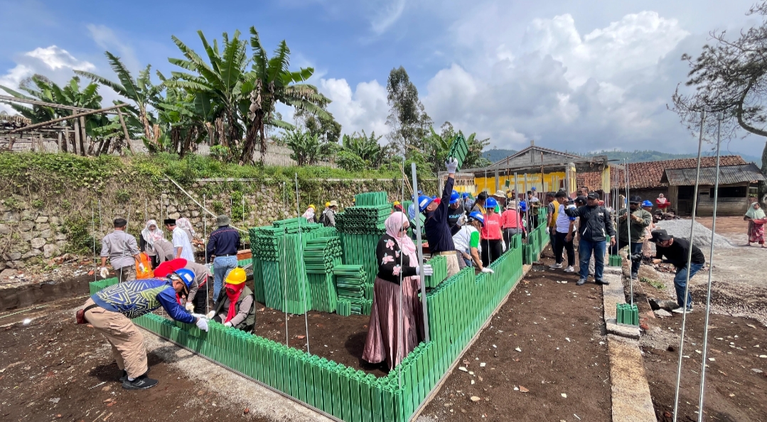 GARUT, CR – Yayasan Bakti Barito bersama Pemerintah Kabupaten Garut melaksanakan peletakan batu pertama pembangunan SDN 3 Barusari, Kecamatan Pasirwangi, Jumat (22/11/2024). Sekolah ini dibangun menggunakan bata plastik daur ulang sebagai material utama, menjadi langkah inovatif dan ramah lingkungan untuk mendukung pemulihan infrastruktur pasca gempa bumi yang melanda daerah tersebut.