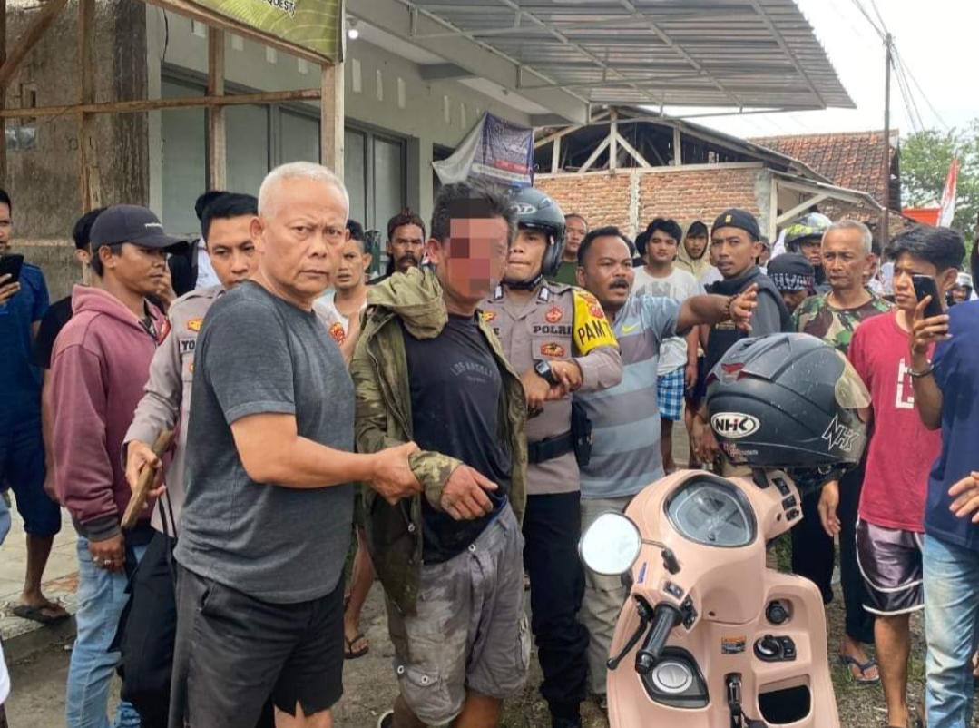 Dua anggota Polisi bersama warga dengan sigap mengejar pelaku yang mencoba melarikan diri menggunakan sepeda motor.