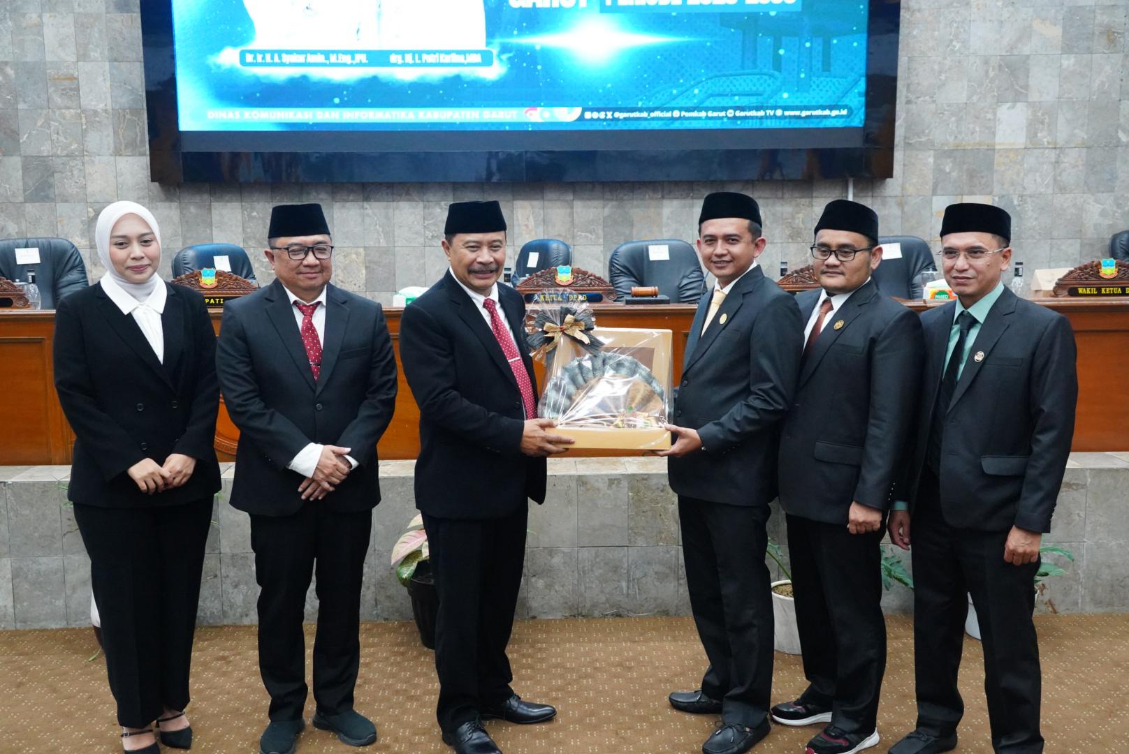 Sebelum digelarnya rapat paripurna, terlebih dahulu dilakukan Serah Terima Jabatan (Sertijab) dari Penjabat (Pj) Bupati Garut, Barnas Adjidin, kepada Bupati Garut terpilih, Abdusy Syakur Amin.