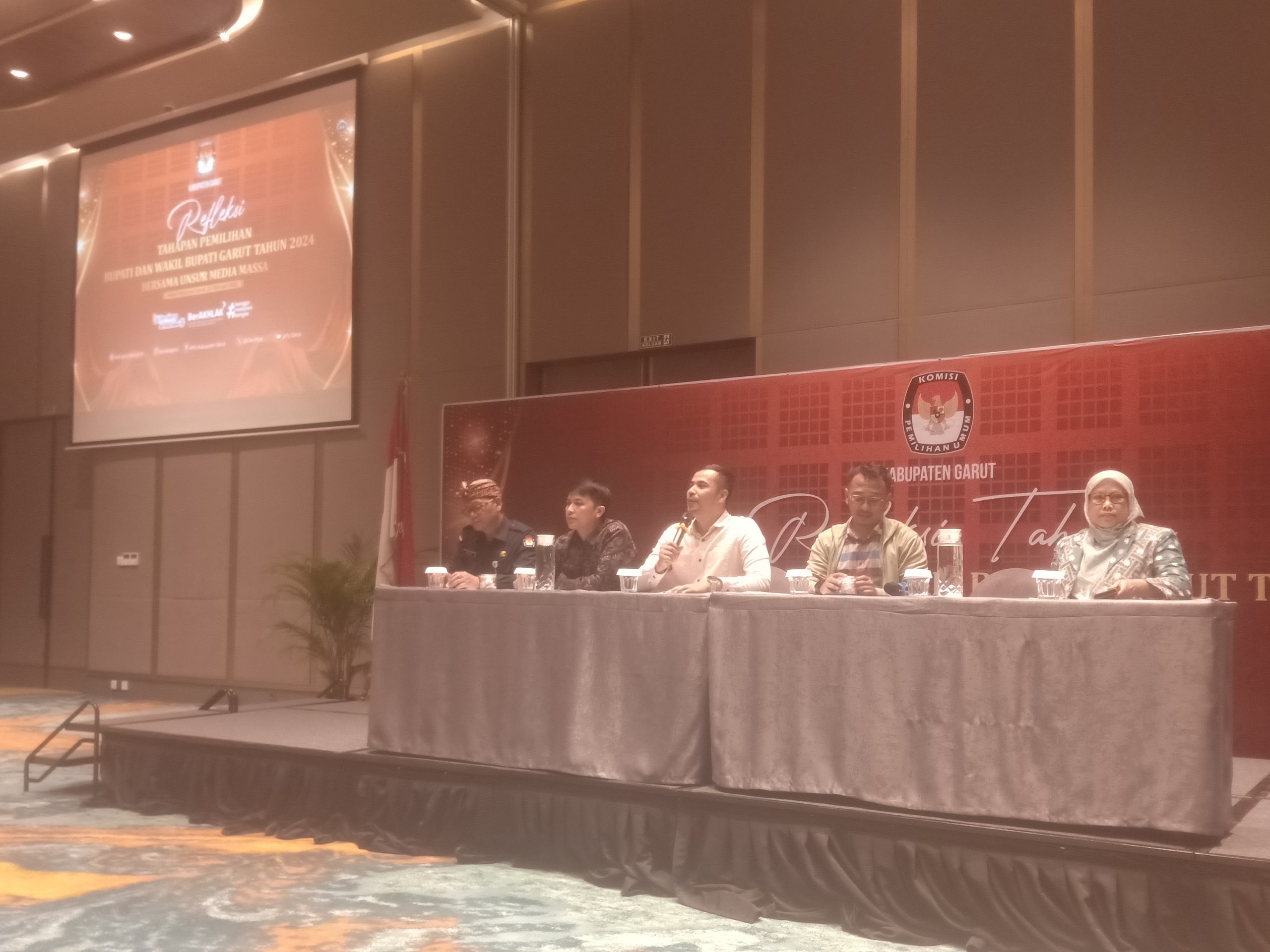 GARUT, Cerita Rakyat – Komisi Pemilihan Umum (KPU) Kabupaten Garut mengapresiasi dan mengucapkan rasa terima kasih kepada para unsur media di Kabupaten Garut yang telah membantu serta berpartisipasi dalam mensukseskan kegiatan tahapan Pilkada serentak Tahun 2024, dalam acara refleksi tahapan pemilihan Bupati dan Wakil Bupati Garut, Sabtu (22/2/2024), di aula Papandayan Hotel Mercure Garut Jalan Guntur, Pakuwon, Kecamatan Garut Kota, Kabupaten Garut, Jawa Barat.