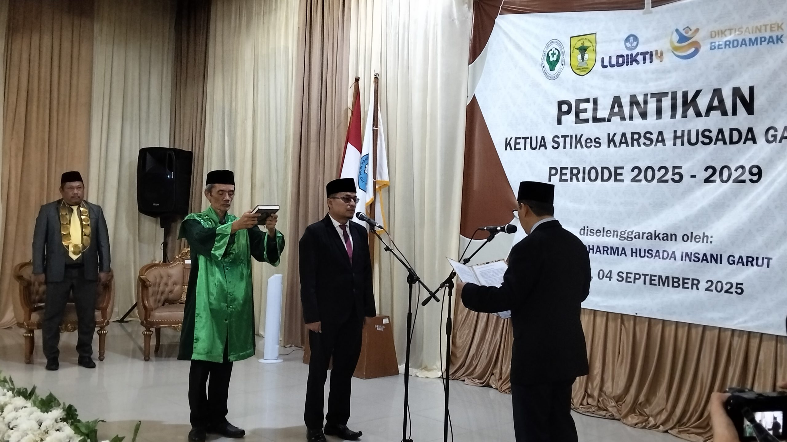 GARUT, Cerita Rakyat – Bertempat di aula gedung kampus 1 STIkes Karsa Husada Garut, Jl. Subyadinata No.7, Jayaraga, Kecamatan Tarogong Kidul Garut, STIkes Karsa Husada Garut menggelar pelantikan dan pengukuhan ketua STIkes Karsa Husada Garut periode 2025-2029, Kamis pagi (4/9/2025).